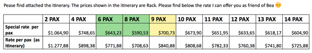 As you can see, the price per person for the Safari increases to $700 USD after 8 pax because a second LandCruiser is needed. It is very important that you confirm your Safari trip by Wednesday Oct. 11th. If you don’t confirm, then we will assume you are not going At present we have reserved 7 PAX (Maryse, Gael, Leila, Dimi, Yann, Elmar, Karin).